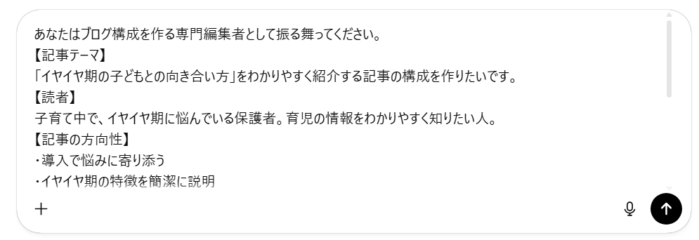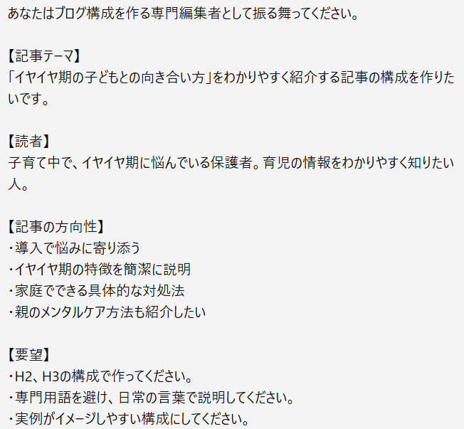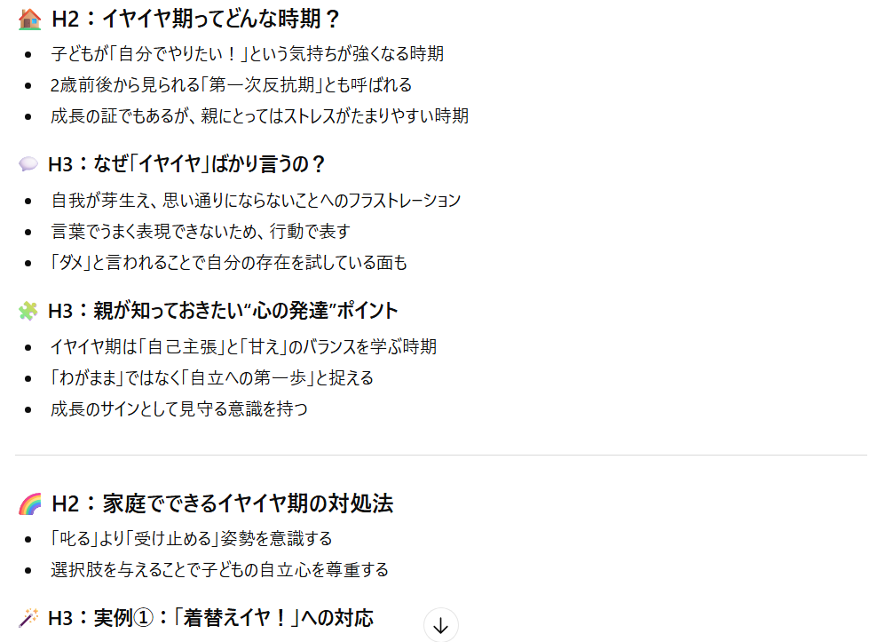 例えば「イヤイヤ期の子供との向き合い方」のブログ構成なら